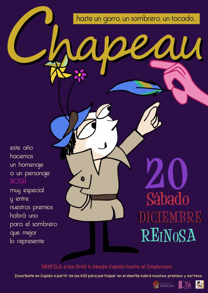 Ser lo mas creativo posible y tener ganas de pasárselo bien serán las dos únicas condiciones para participar en la fiesta “mas loca y divertida” de las que se celebran, anualmente, en Reinosa. En “Chapeau” los protagonistas serán, de nuevo, los sombreros más extravagantes, que desfilarán el 20 de diciembre, a partir de la 1 de la tarde, por las calles de la ciudad. El Parque de Cupido será el punto de partida de este evento organizado por Galería Vertical con la colaboración del Ayuntamiento de Reinosa y que siempre desborda imaginación, color y mucha diversión.